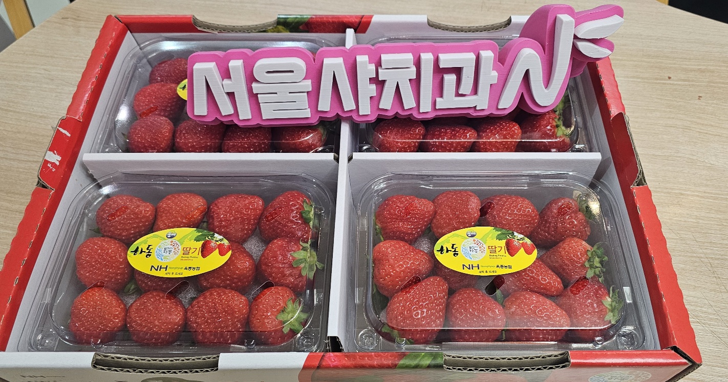 빨갛게 잘 익은 딸기를 보니 환자분의 마음처럼 달콤하고 정성이 느껴지더라고요. 딸기는 비타민C가 풍부해서 피로 회복에도 도움을 주고,